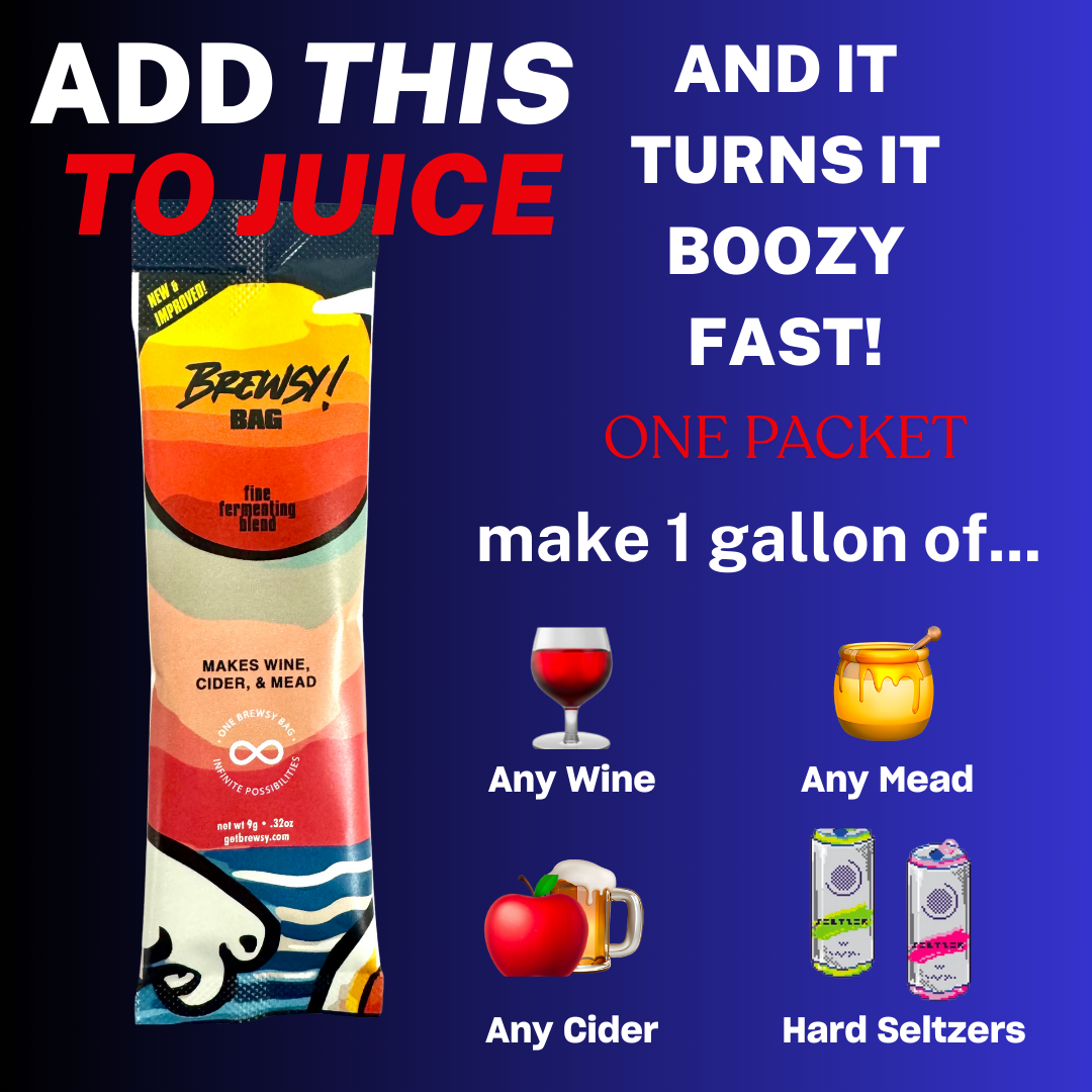 The Brewsy Starter Kit with Glassware is jam packed with the stuff you need to begin making incredible wine, cider, or mead at home. All you'll need is juice and sugar to get started!
